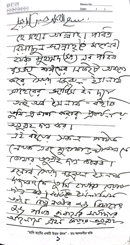 আমি মসজিদে নববীতে বিগত ২১ শে মার্চ ২০২৩ খ্রি: যে কথাটি লিখেছিলাম বাংলা ভাষায় এবং ইংরেজি অনুবাদ এখানে তুলে ধরা হলো :