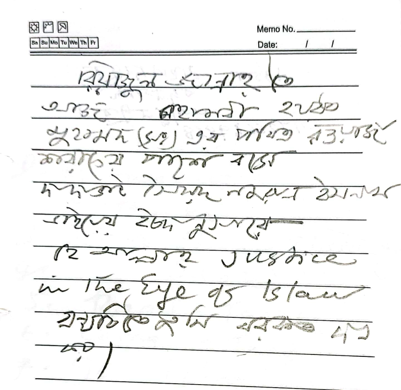 জাস্টিস ইন্ডিয়ায় অফ ইসলাম গ্রন্থপ্রনেতা মহোদয়ের অনুরোধে